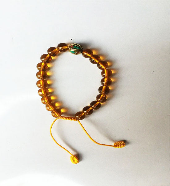 Citrin-Handmala mit 20 Perlen und einer Markierungsperle. Handgelenkmalas werden für Niederwerfungen und Reisen verwendet. Sie haben einen verstellbaren Code.