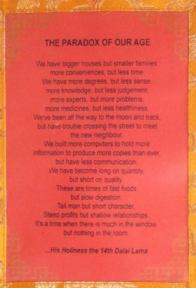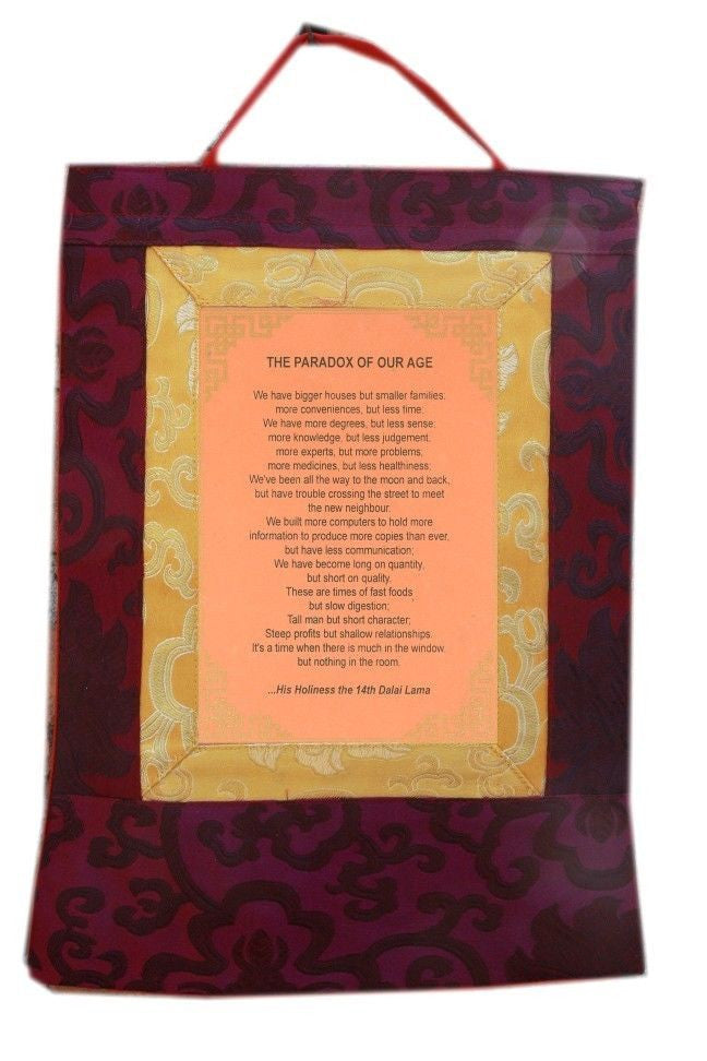 Dalai Lama Botschaft Thangka / Wandbehang / Zitate / Das Paradox unserer Zeit