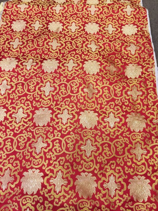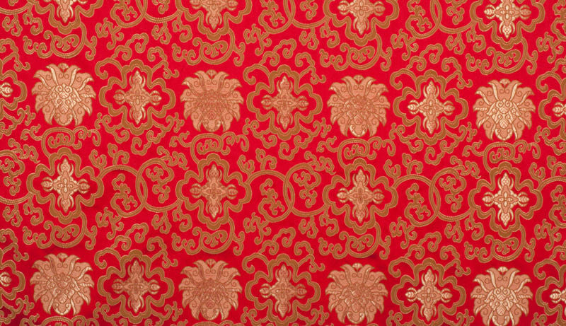 Tibetisch-buddhistischer Seidenbrokat/Seidenstoffe mit rotem Lotusmotiv