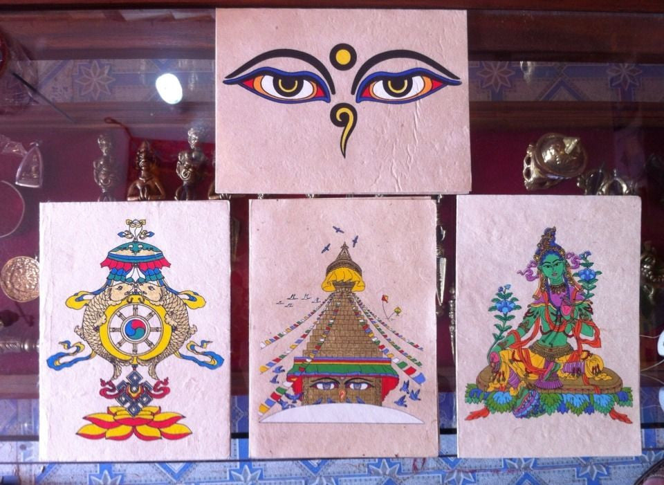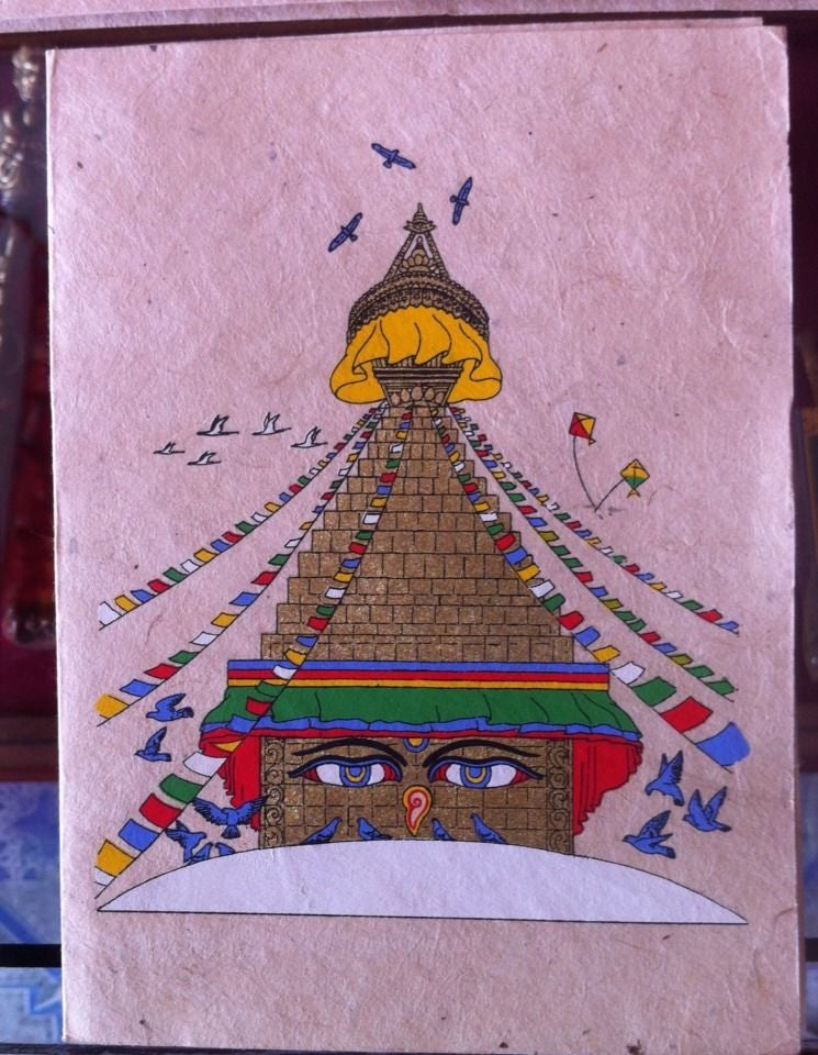 Ces cartes de vœux sont fabriquées à la main au Népal avec du papier lokta traditionnel, également connu sous le nom de papier de riz. Nous avons combiné ces cartes dans un ensemble de 4 pièces contenant des yeux de Bouddha, huit symboles de bon augure, le stupa de Boudhanath et la tara verte.