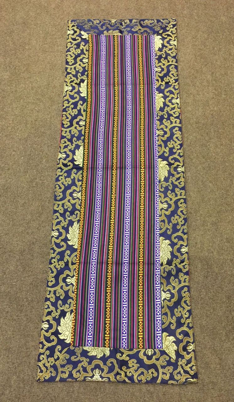 Il s'agit d'un chemin de table de très haute qualité composé d'une combinaison de coton traditionnel bhoutanais et de brocart de soie traditionnel tibétain à motif de lotus. Il est disponible dans une combinaison de couleurs bleu, jaune et blanc. Ce chemin de table est fabriqué au Népal. Il peut être utilisé pour décorer votre salle de méditation ou ajouter un style oriental dans n'importe quelle partie de votre maison.