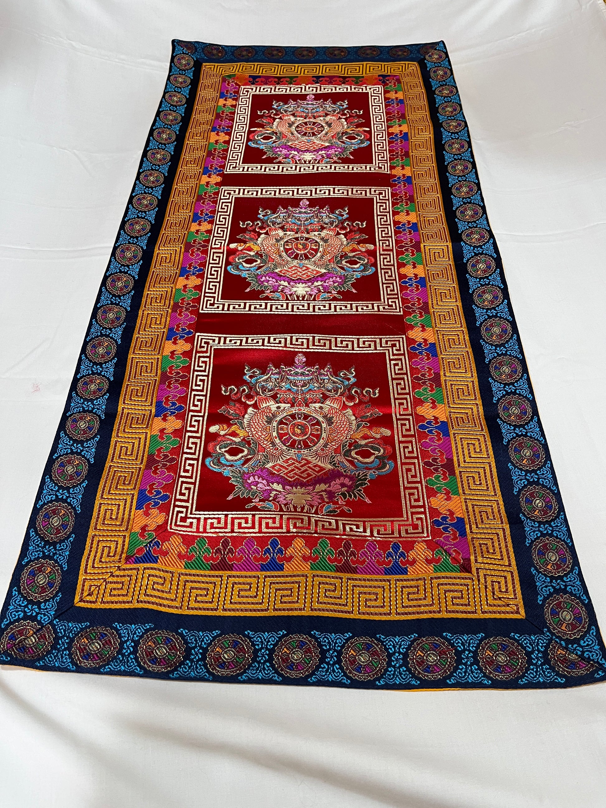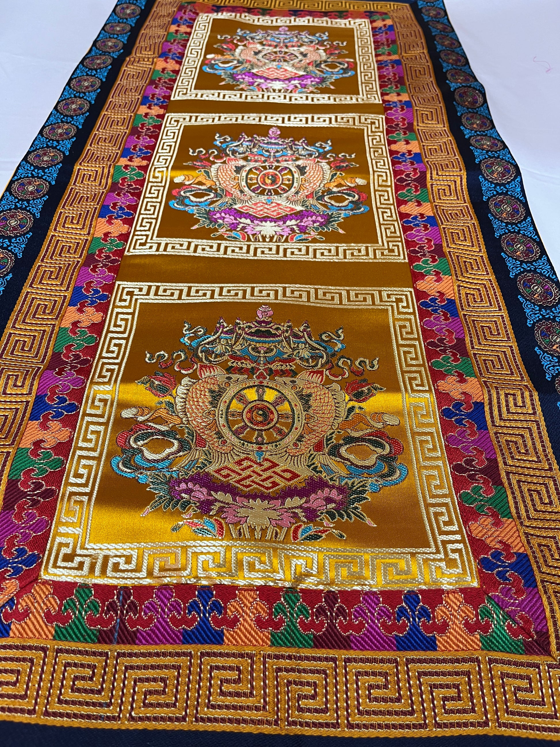 Tibetan buddhist auspicious symbol silk brocade table runner / table cloth / shrine cover