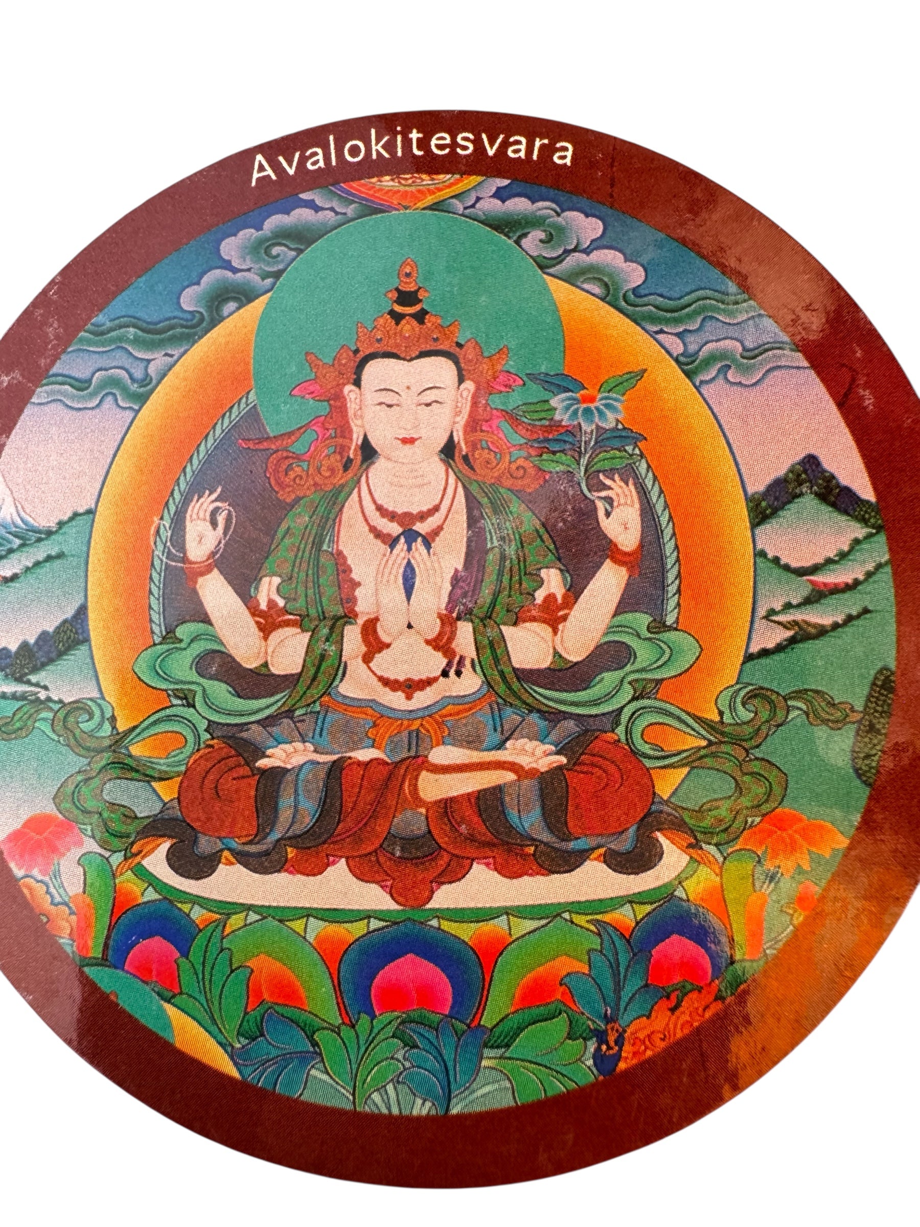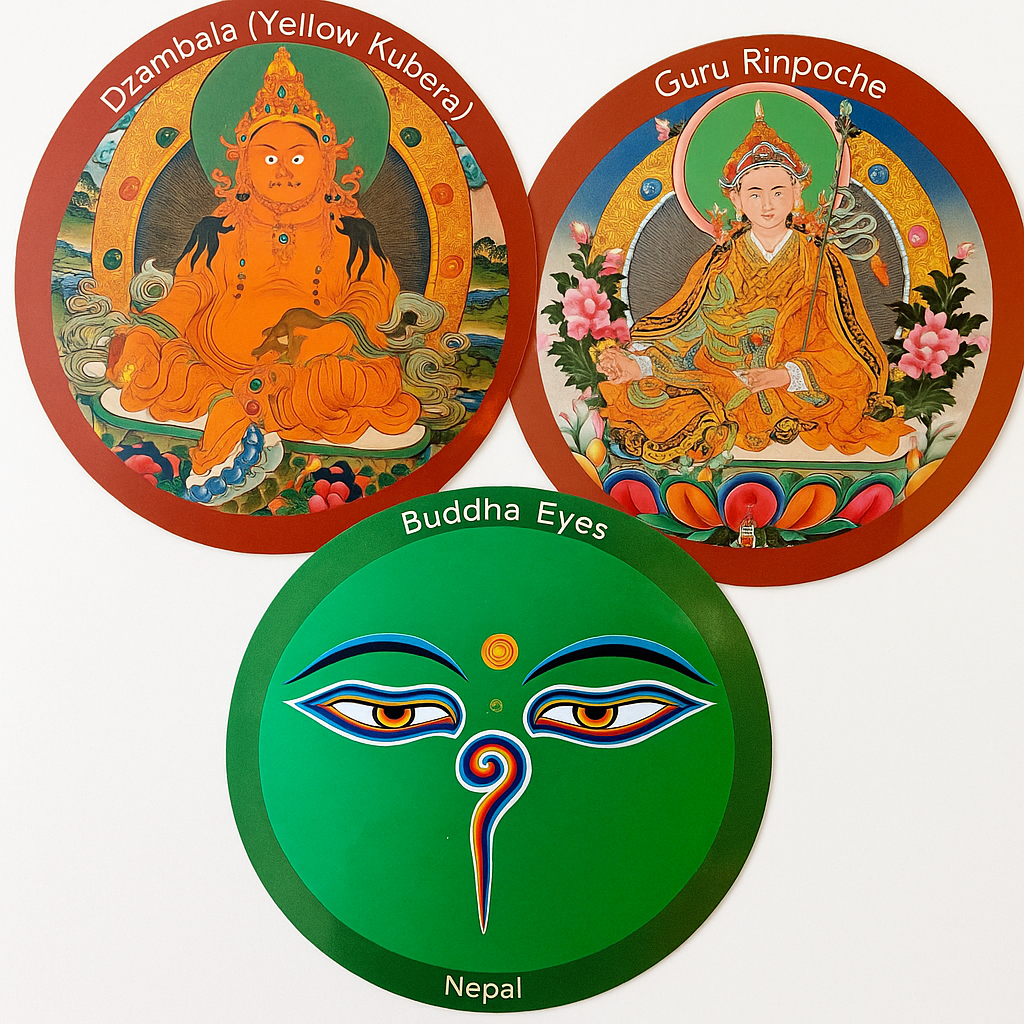 These Tibetan Buddhist fridge magnets feature revered deities like Medicine Buddha, Green Tara, Manjushri, Zambala, Guru Rimpoche, Shakyamuni Buddha, Chenrezig (Avalokitesvara), and sacred mandalas including Buddha Mandala, Kalachakra, Medicine Buddha Mandala, Wheel of Life, and Green Tara Mandala. Perfect for your refrigerator or any iron surface such as an almirah, these magnets help infuse your space with positive energy and spiritual harmony. Made in Nepal, they bring a meaningful touch of Tibetan tradition into your everyday surroundings.