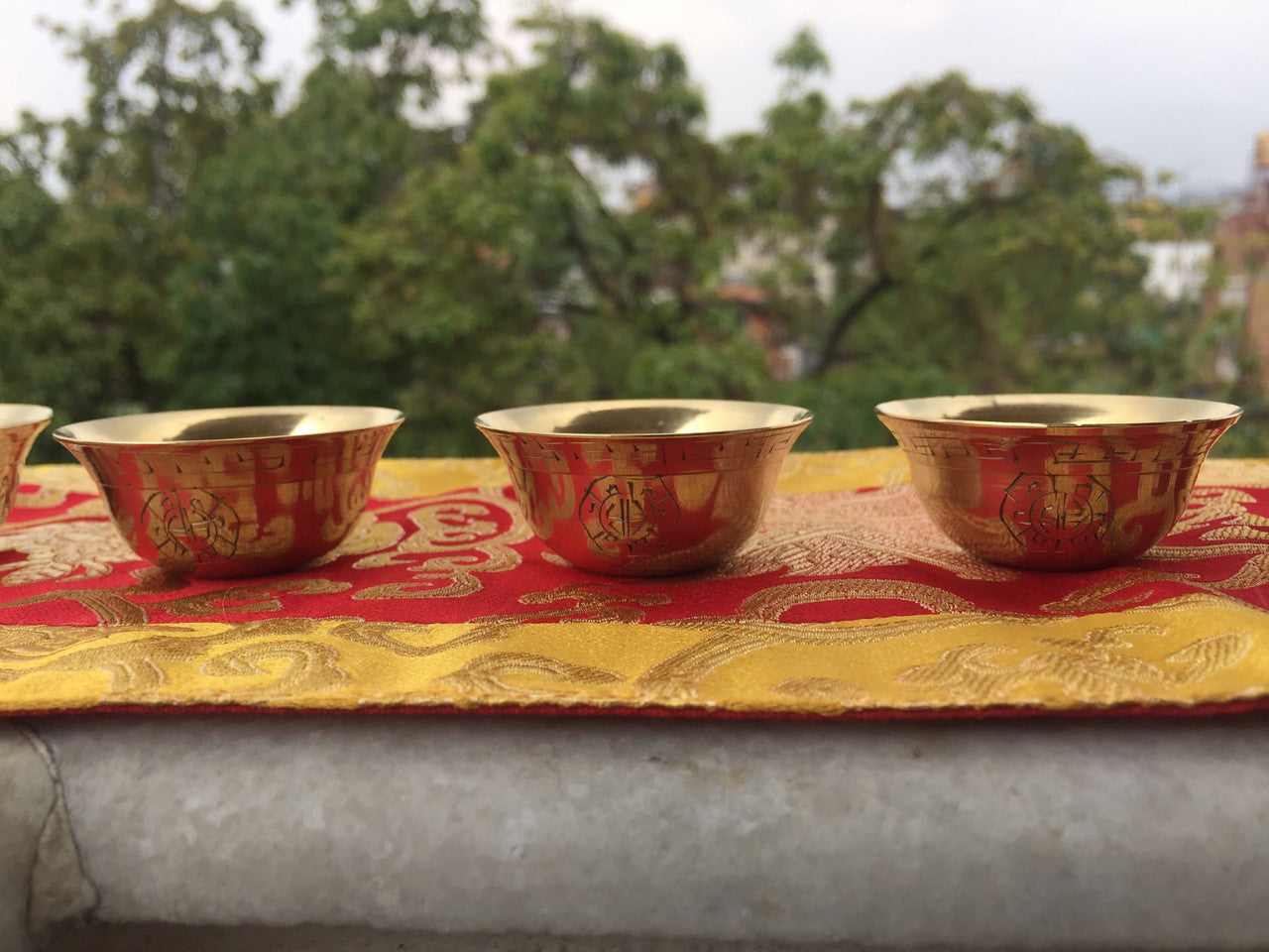 I love my water offering bowls. And how sweet that they came with this beautiful cloth. They are small but perfect for what I was looking for. And timely delivery considering it came from Nepal. Thank you and will be ordering from you again!
