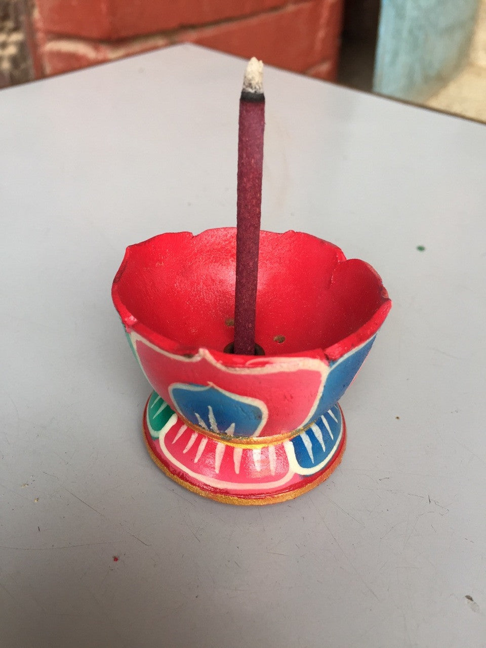 Brûle-encens/support tibétain en bois fait main en forme de petit lotus