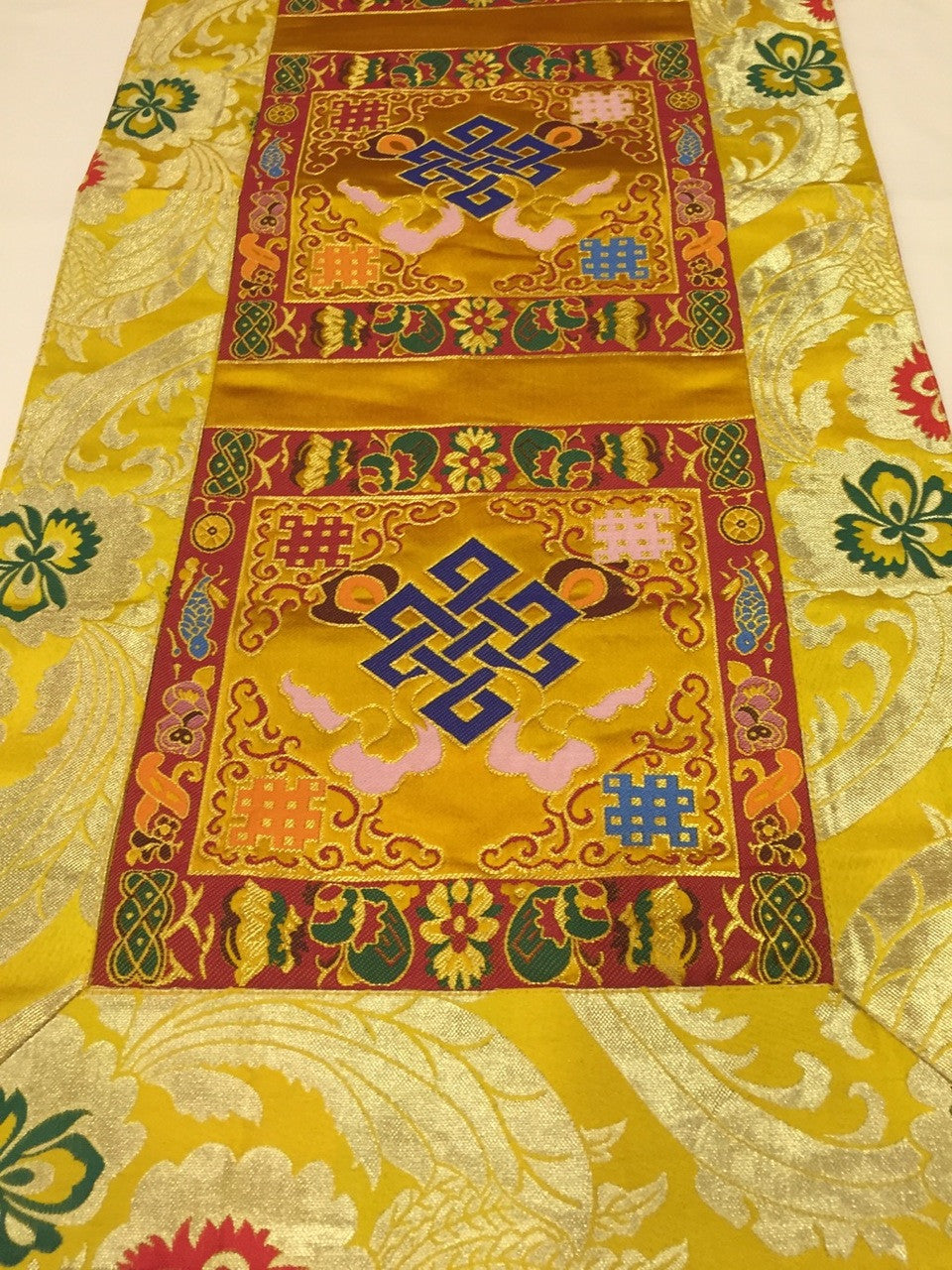 Chemin de table en brocart de soie à nœud sans fin jaune tibétain / couverture de sanctuaire / nappe d'autel / couverture de table jaune