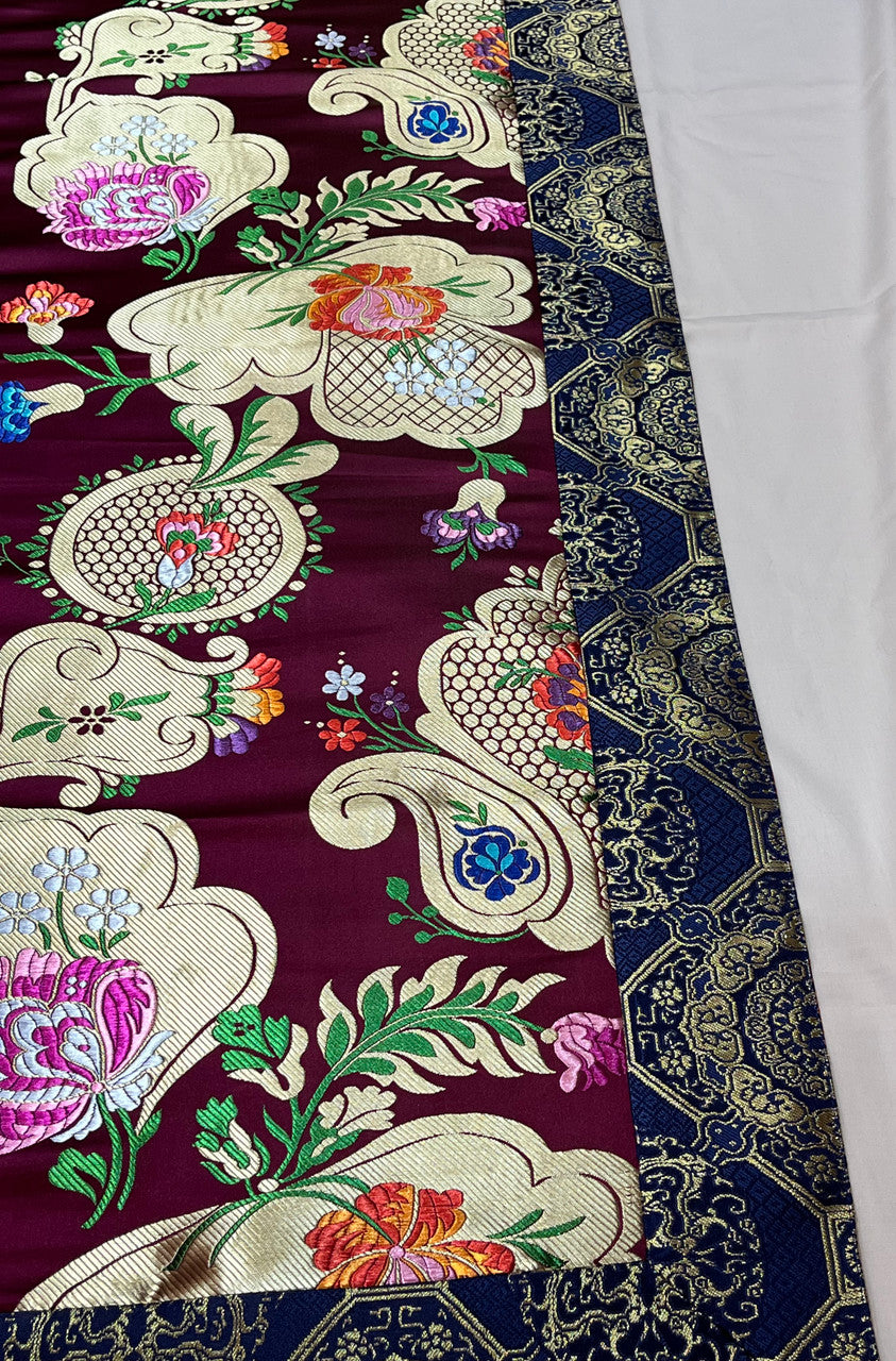This is very high quality Large size table runner made up of silk brocade. This table runner is made in Nepal with Tibetan traditional flower design brocade. It can be used to decorate your meditation room or add oriental style in any part of your home.