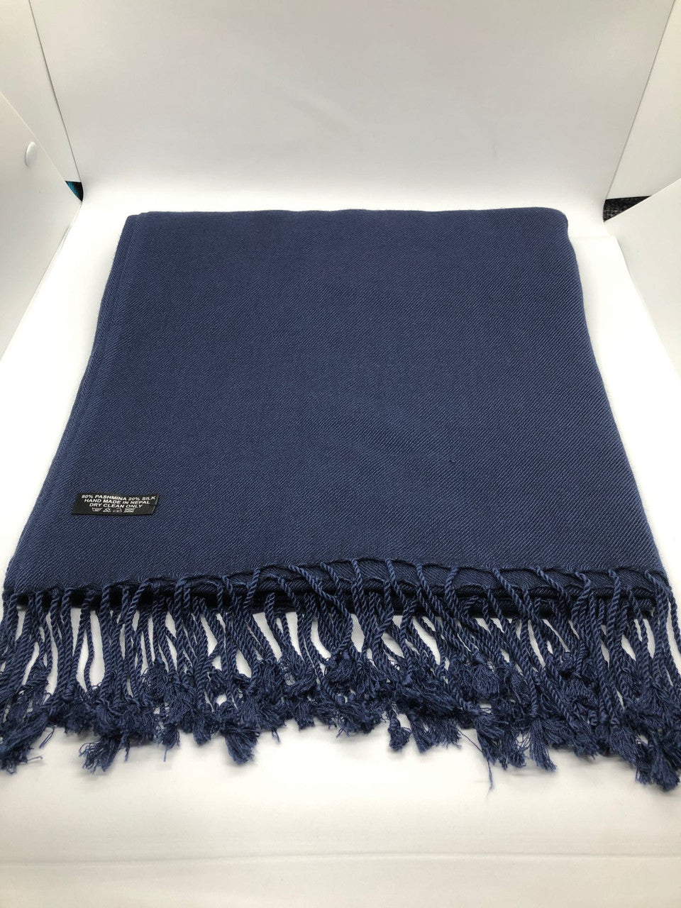 A stunning dark Blue large 80 % Pashmina and 20 % silk zen or meditation shawl.These shawls are intended to surround the person during the meditation session and are believed to hold the energy that accumulates and also has a beneficial effect on the mind.